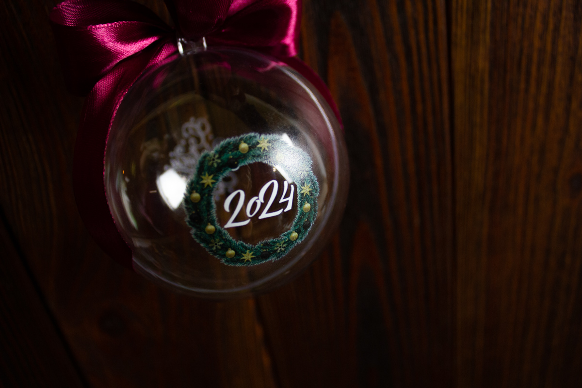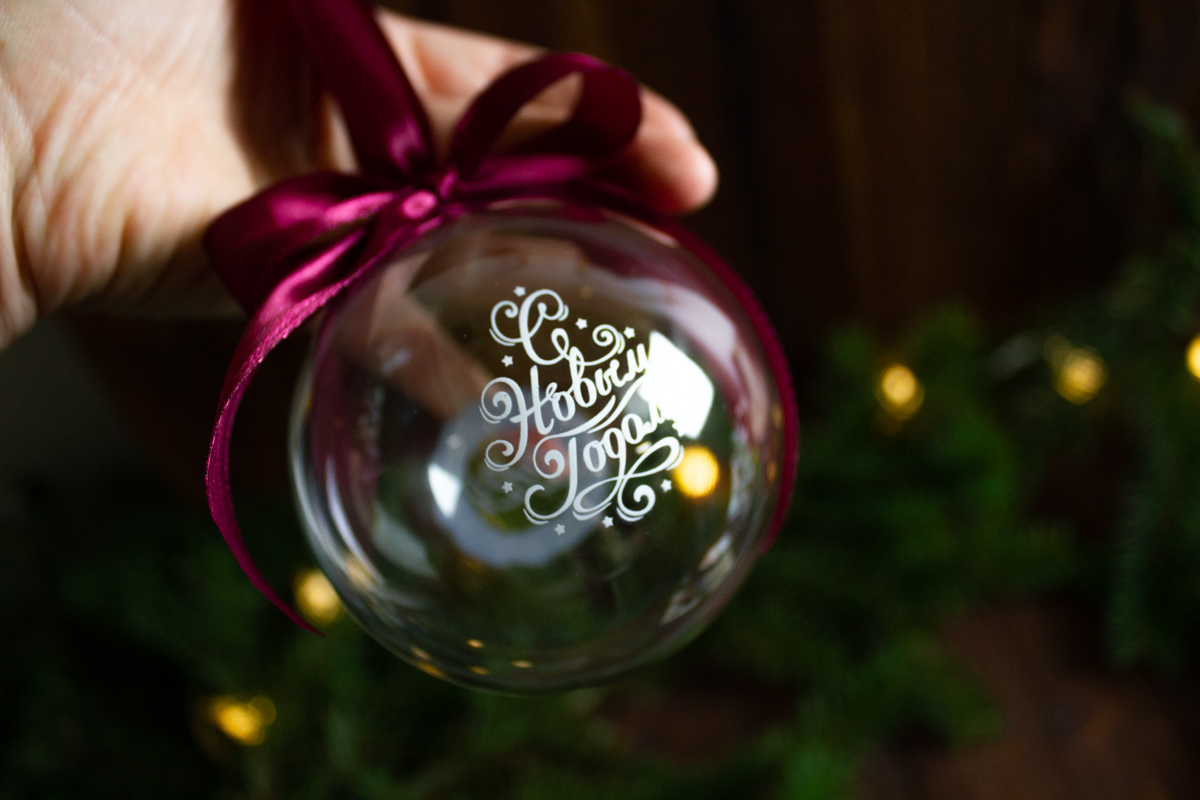Новогодний шар с логотипом компании (не более 4 см), наполненный искусственным снегом
