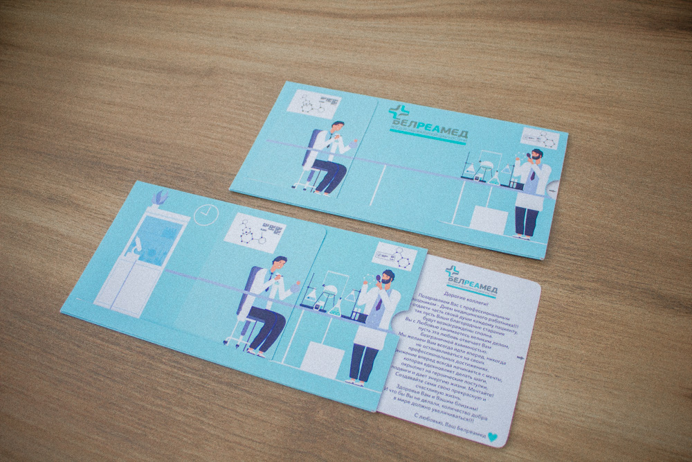 🏥 Корпоративная идентичность — открытка с логотипом клиники укрепляет командный дух​
