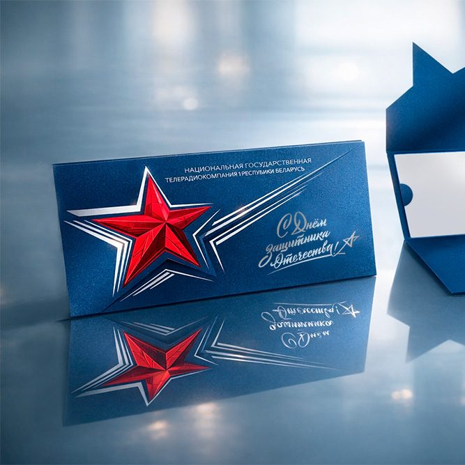 Заказать открытки на 23 февраля. Цена 11,50 руб. с логотипом компании. Минимальный тираж от 20 штук, срок 2-10 дней. Бесплатная доставка по Минску и Беларуси. Возможность персонализации с именами получателей. Заказывайте заранее — спрос возрастает ближе к празднику!