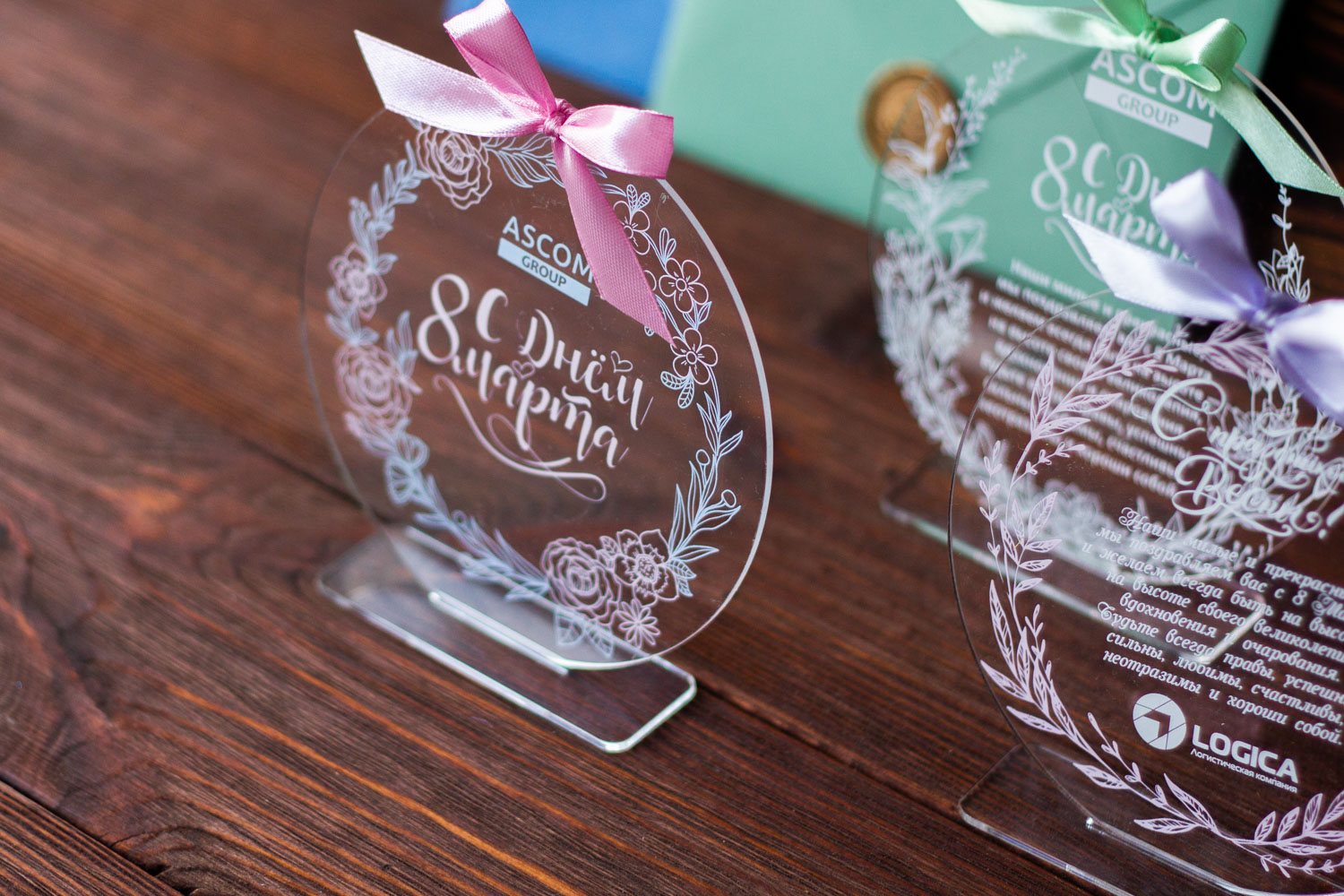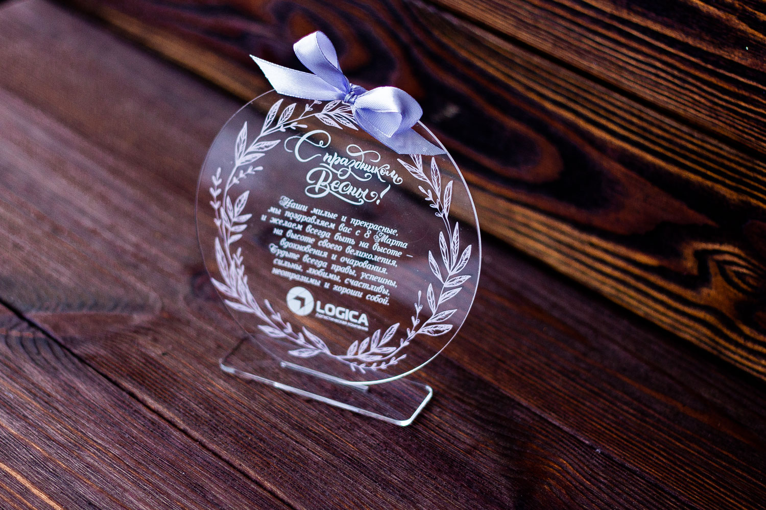 Новогодняя акриловая открытка №48 с поздравлением к 8 марта