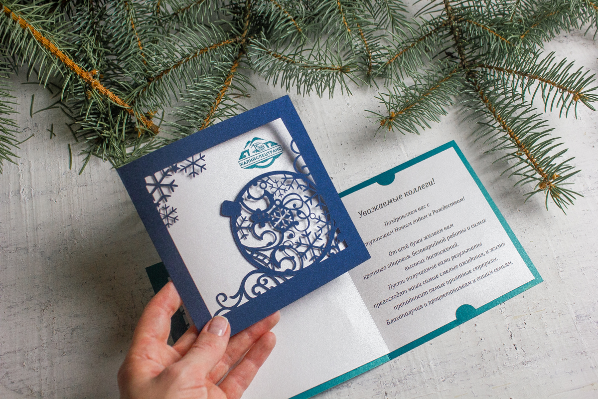 Стильная корпоративная открытка в современном квадратном формате с индивидуальным нанесением фирменного логотипа вашей компании. Оригинальная геометрическая форма мгновенно привлекает внимание и выделяется среди традиционных прямоугольных открыток. Качественная дизайнерская бумага и профессиональная печать логотипа делают эту продукцию идеальным инструментом для новогодних корпоративных поздравлений клиентов, партнеров и сотрудников.