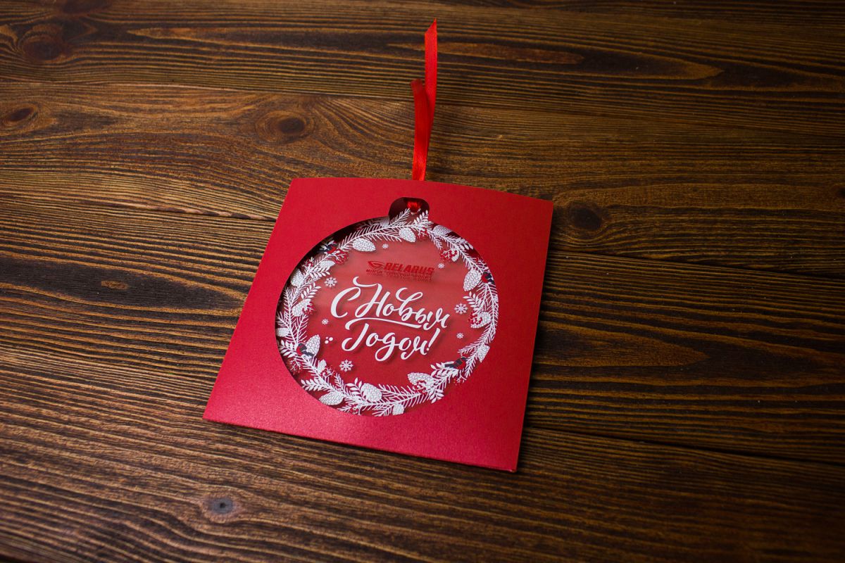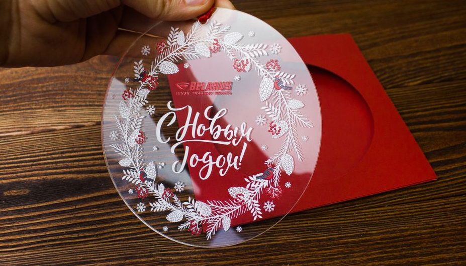 Печать на открытке выглядит будто на тонкой льдинке, по-зимнему, по-новогоднему.