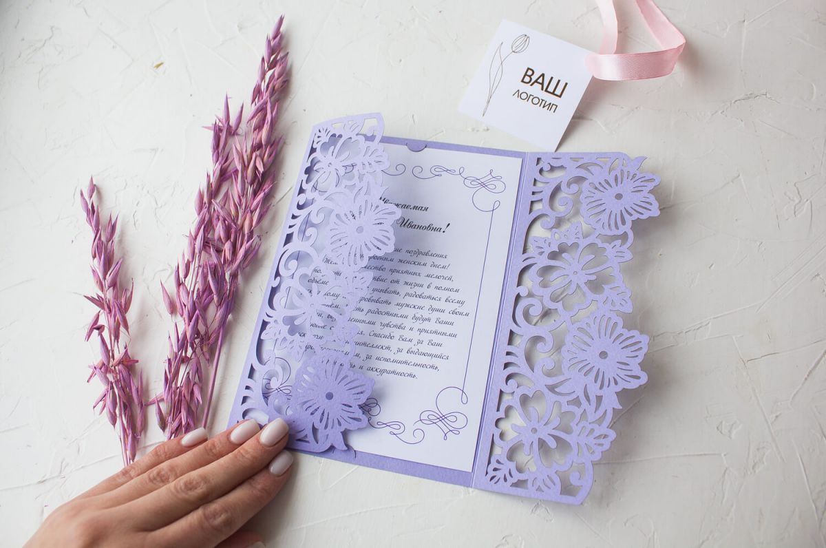 Открытка с логотипом Вашей компании выполнена лазерной резкой.