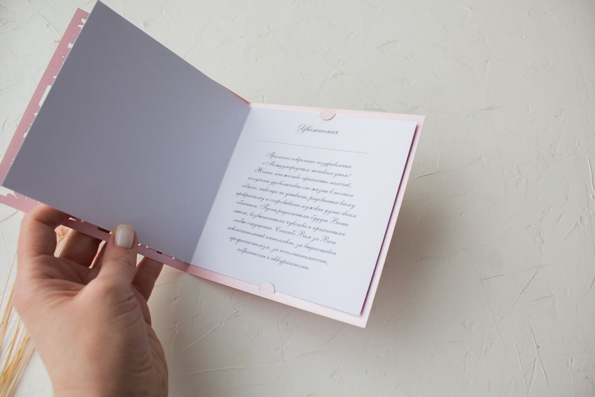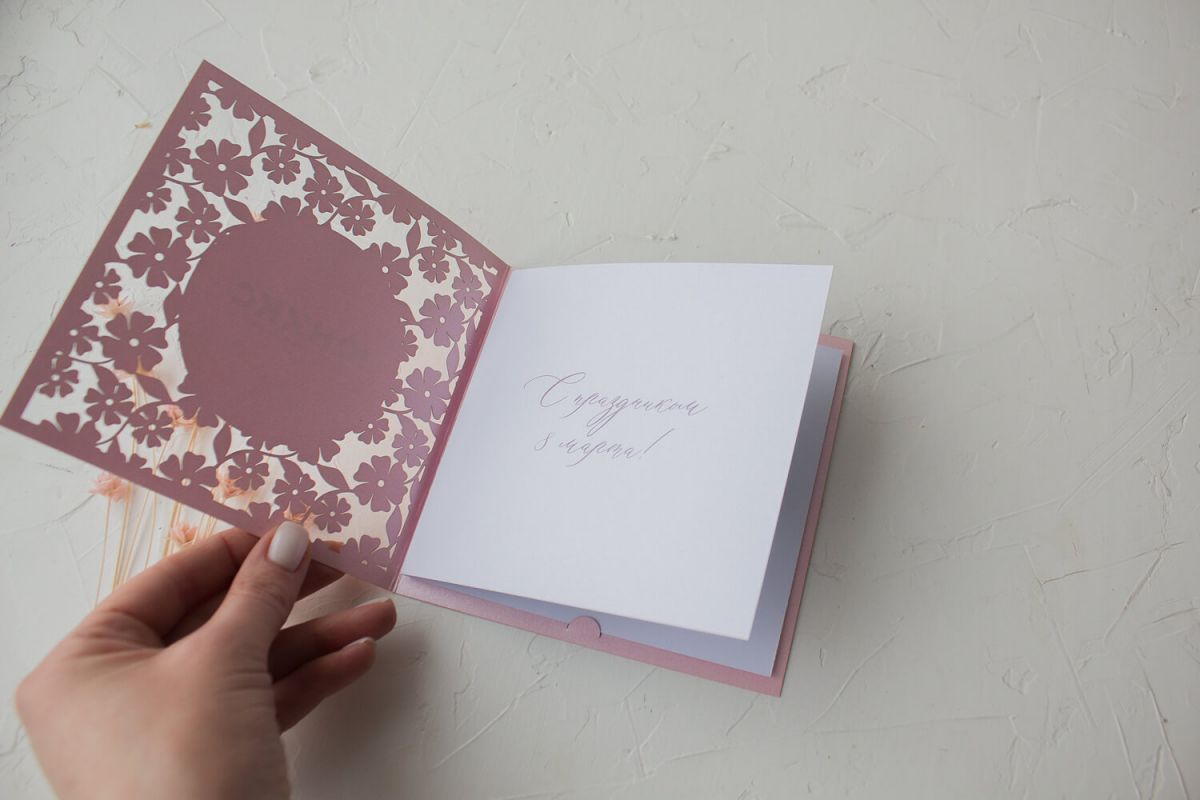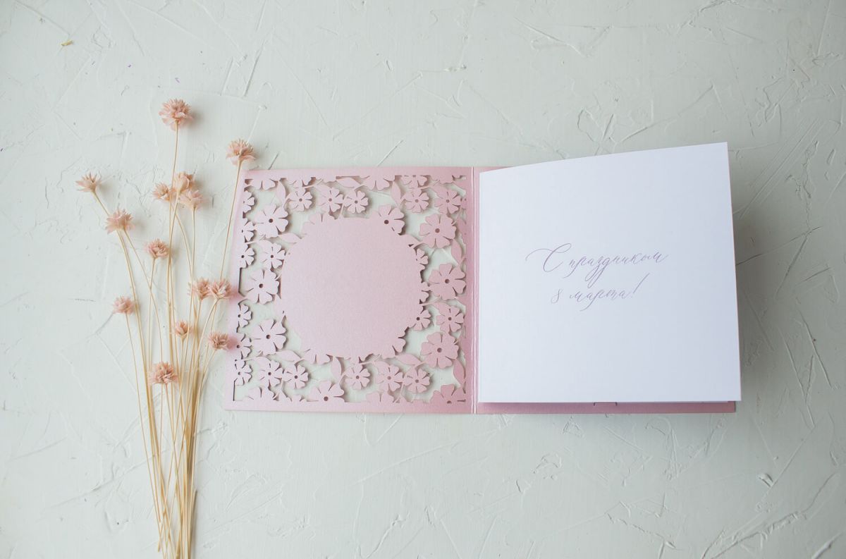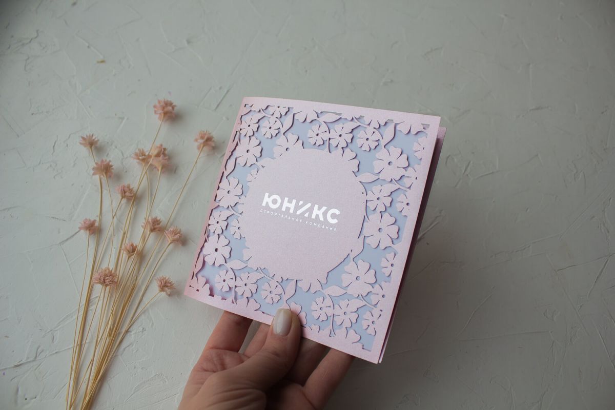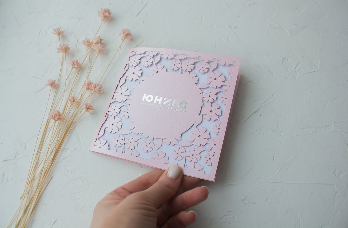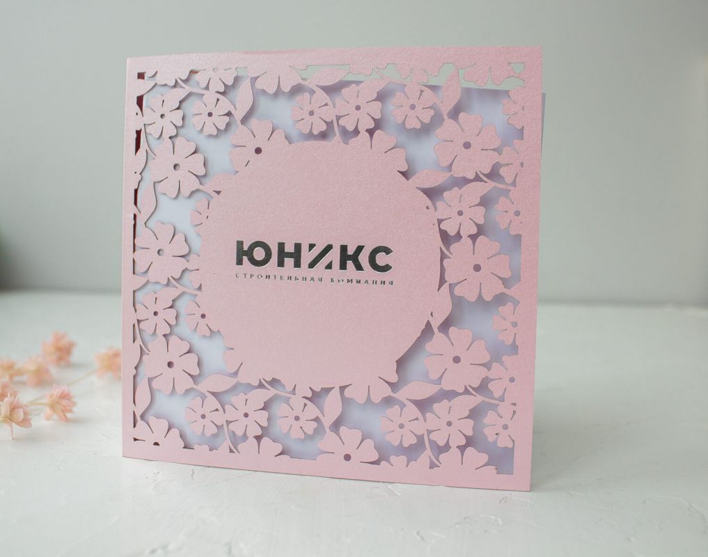 Открытка с логотипом Вашей компании выполнена лазерной резкой.