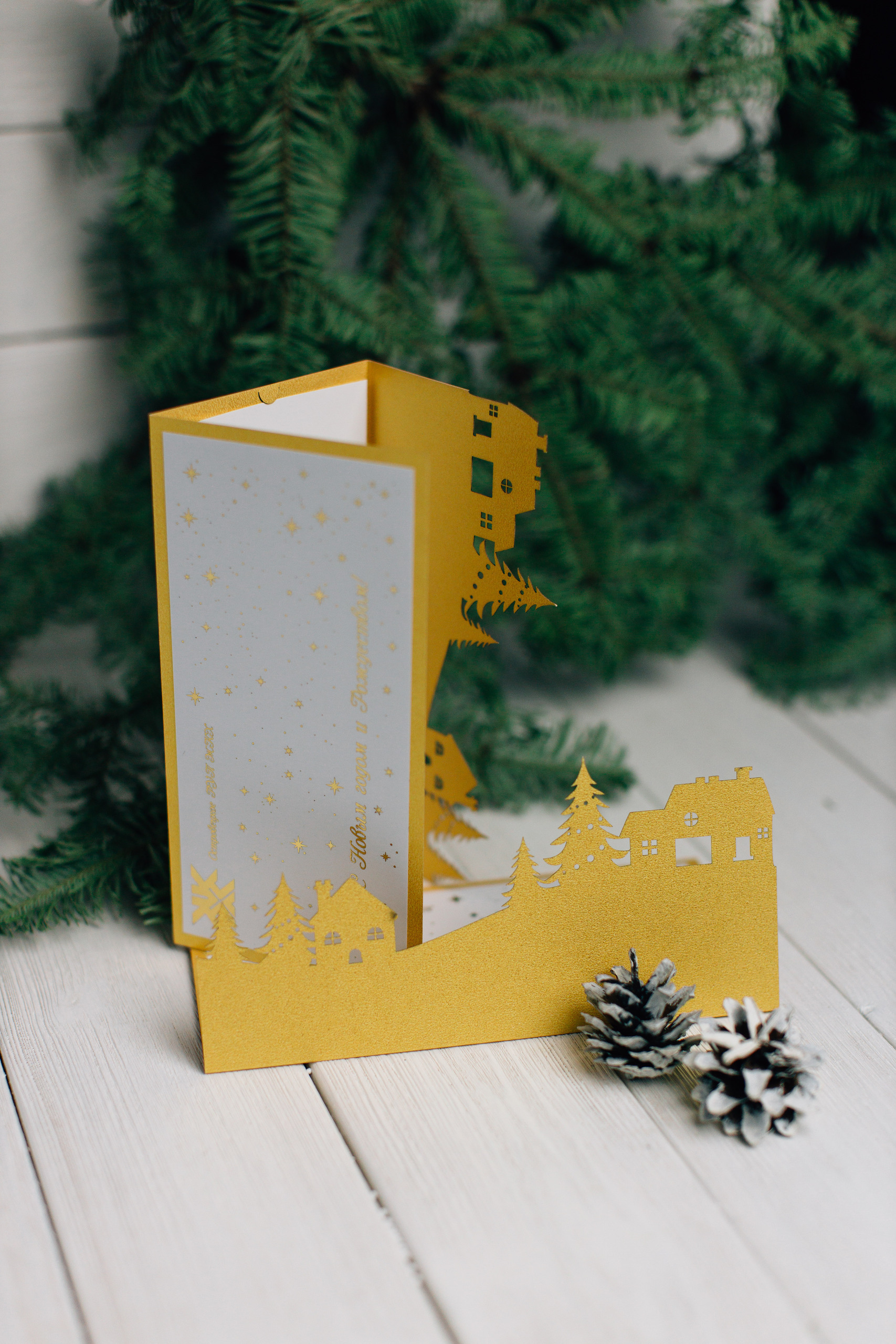Открытка в 3 сложения. Выполнена на плотной дизайнерской бумаге