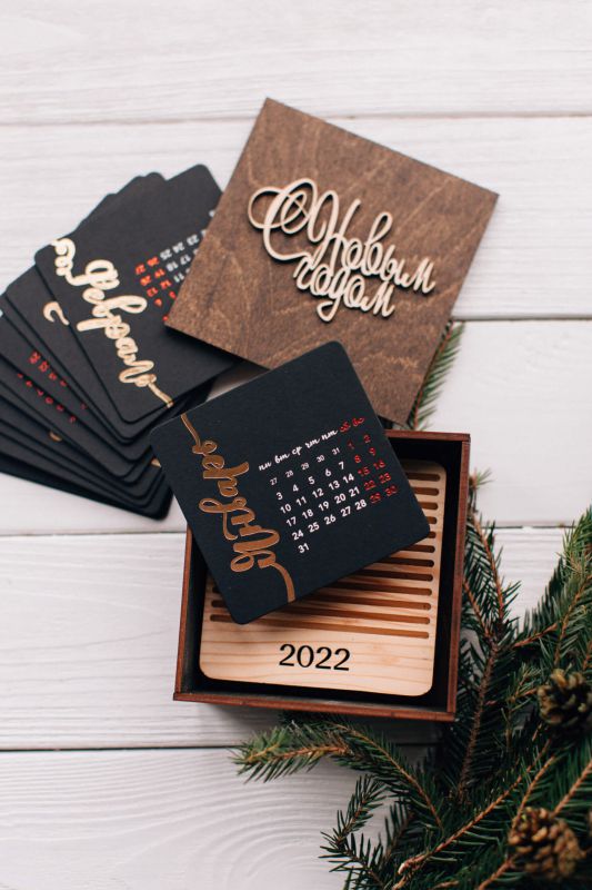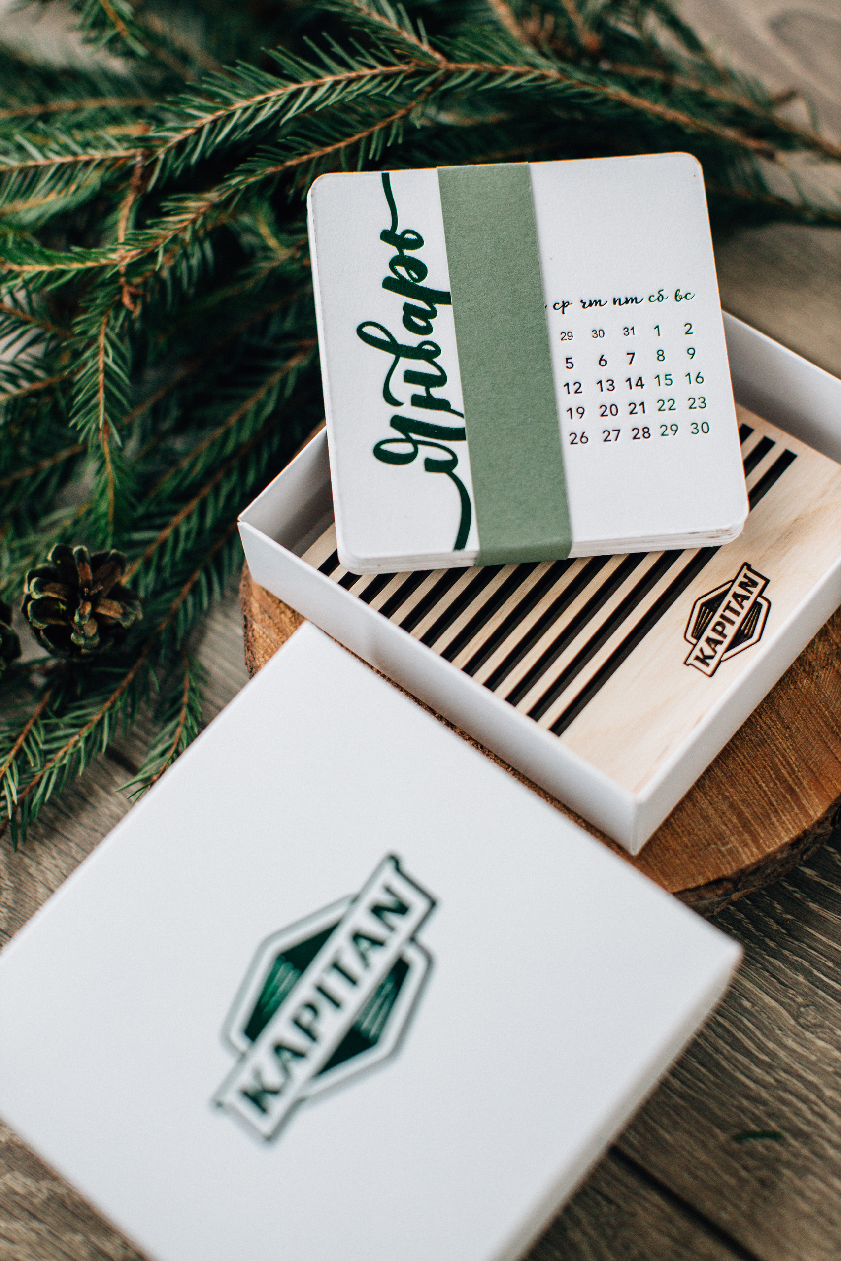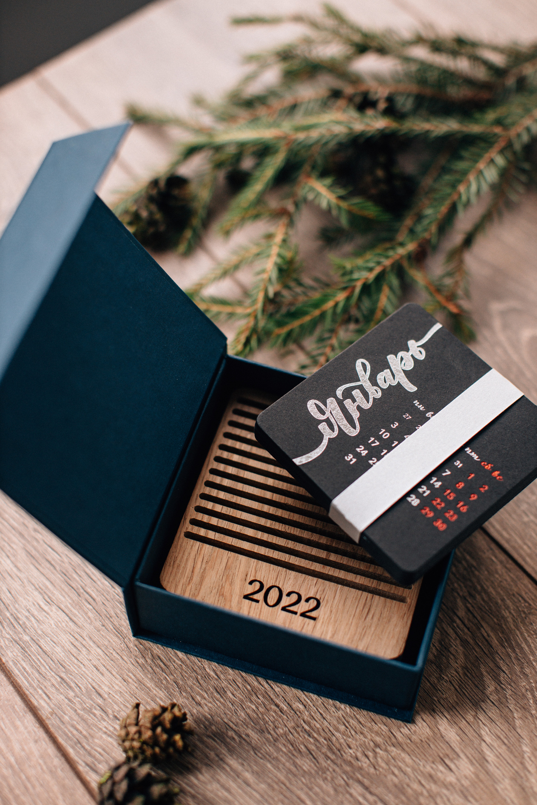 Возможна различная упаковка календаря (деревянный короб, коробка из кашированного картона )
